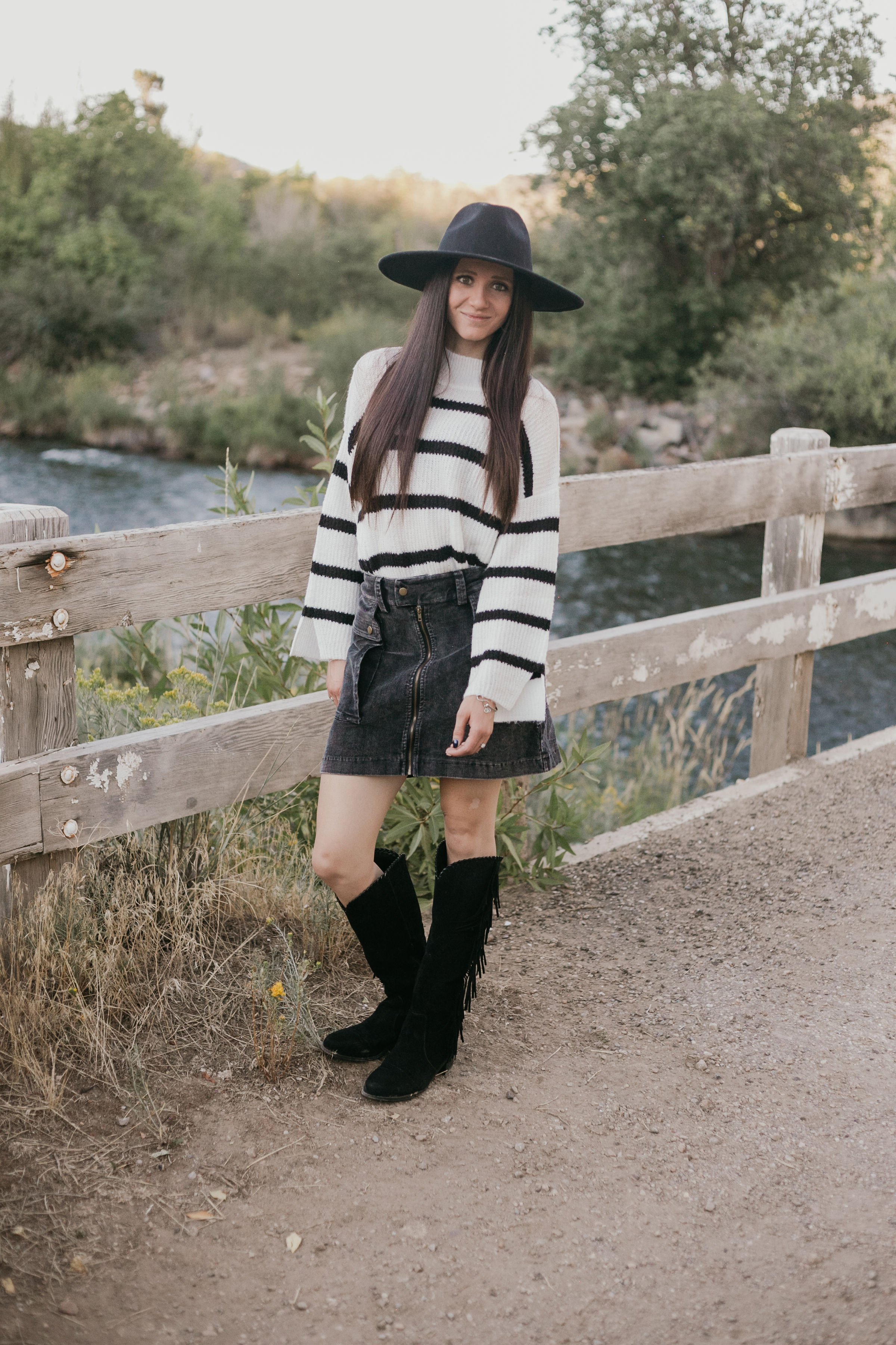 4. Folsom Blues Sweater with the Obsidian Smoke Skirt - For a match made in fall fashion heaven, combine these two classic & cozy pieces together and I promise it will quickly become one of your favorite go to outfits. Mixing up different materials and textures is another great element you get with this outfit. The corduroy with a bronze zipper compliments the soft, lightweight material of the sweater.